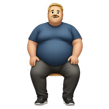 A fat guy with blonde hair and glasses sitting at a computer doing schoolwork emoji
