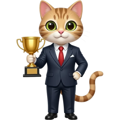 a female cat in a suit with an award emoji