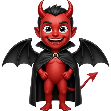 a Red devil, short horn Small red imp holding pitchfork, tail curled emoji