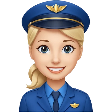 light brown skin flight attendant with brown hair in a bun blue uniform emoji