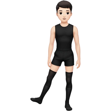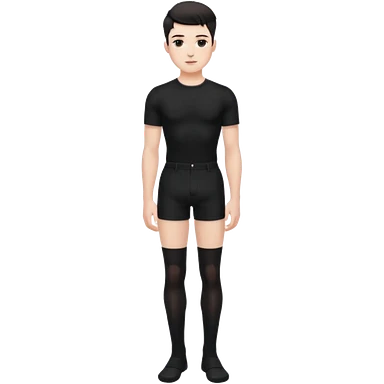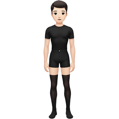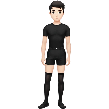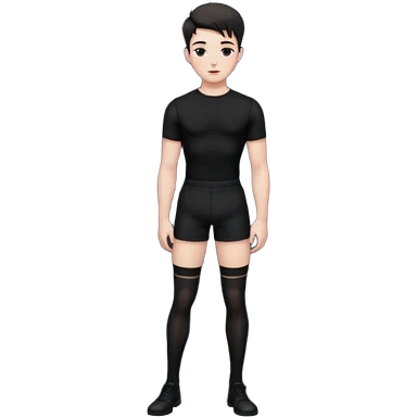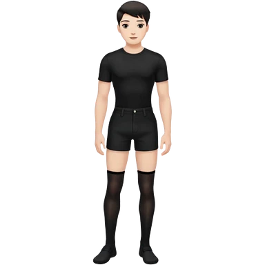 Male in his 20s, clean shaven, feminine look, wearing black thigh highs, black crops, black feminine shorts, is a femboy. emoji