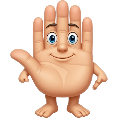 a hand character named fingerling with fingers in positions that make it look like two arms and legs. emoji