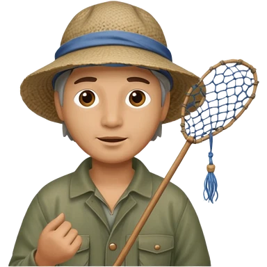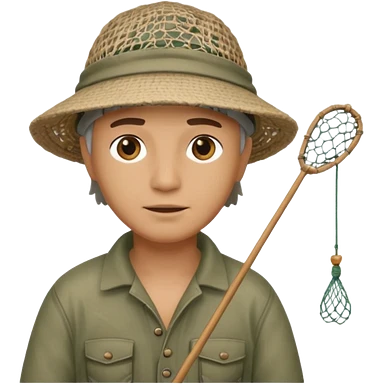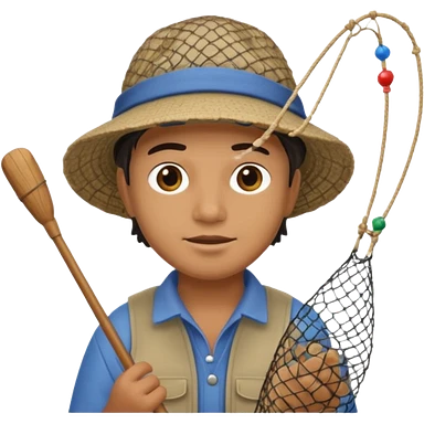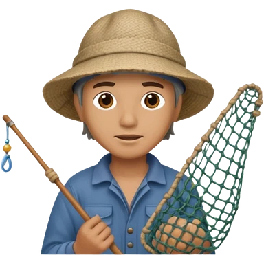 a fisherman with a fishing rod with a fish hanging on the hook emoji