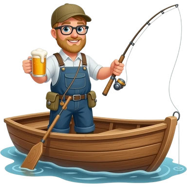 A fisherman with a ciggarette hanging out of his mouth, a beer in one hand, and a fishing rod in the other hand emoji | AI Emoji Generator