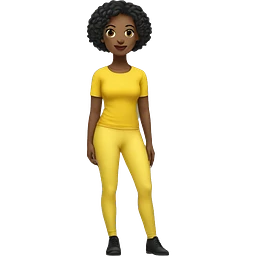 black woman posing with a yellow top and yellow flared leggings with short black hair emoji