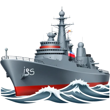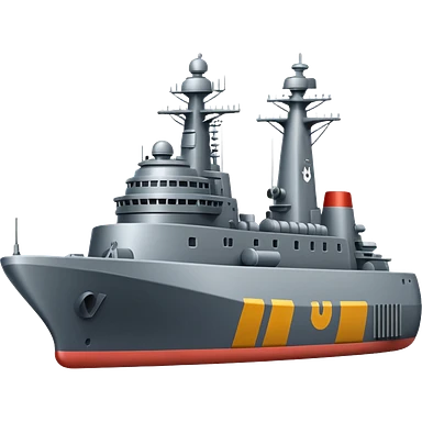 A flat 2D vector emoji of a grey Navy warship, Apple iOS emoji style, simple shapes, solid colors, minimal detail, no gradients, no 3D effects, white background. emoji | AI Emoji Generator
