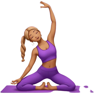 A flexible woman in purple outfit stretching sideways in triangle pose, minimalist background, soft lighting. emoji | AI Emoji Generator