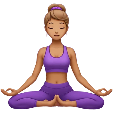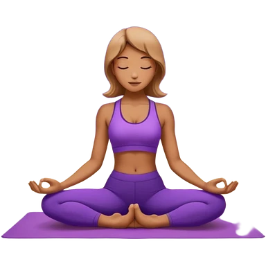 A woman in a purple yoga outfit resting in child’s pose, peaceful feeling, gentle mandala texture in background. emoji