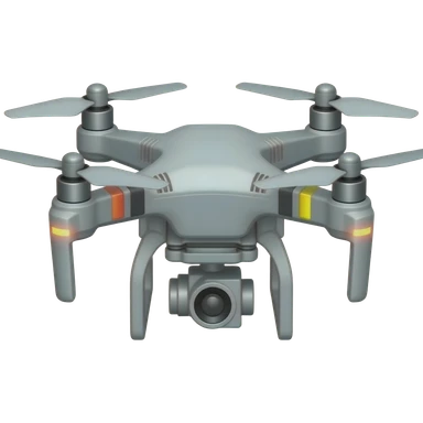 Drone with a sleek design, flying in the air, with rotating propellers, representing modern technology and innovation emoji