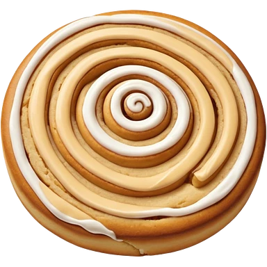 a cinnamon roll single layer cookie with only 2 swirls and full glaze emoji