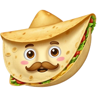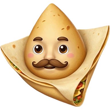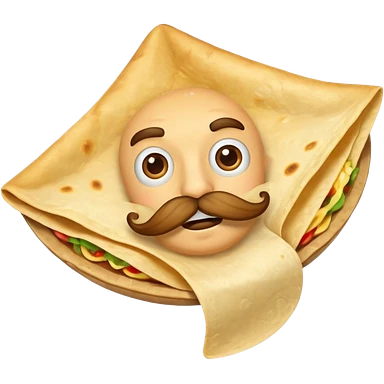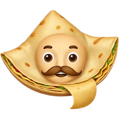 a flying tortillo with a thick mustache, no handlebar corners on the mustache emoji