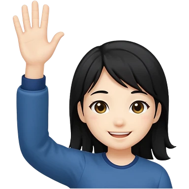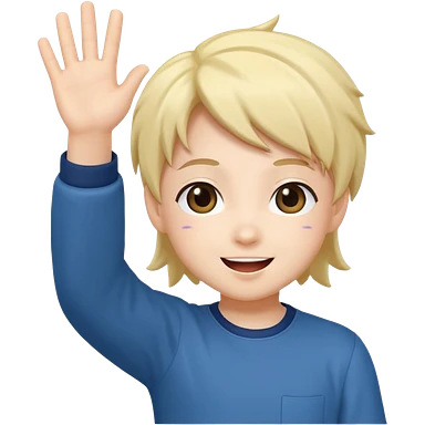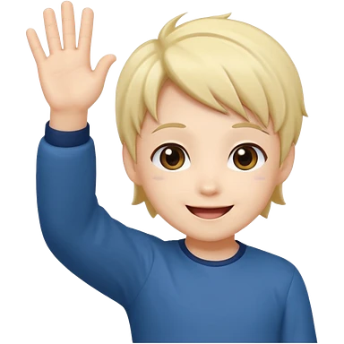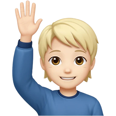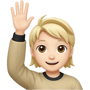 A 3D Memoji of a boy with a friendly expression, wearing a black hoodie and waving while saying "hi". The Memoji should have vibrant and expressive facial features with realistic textures. emoji