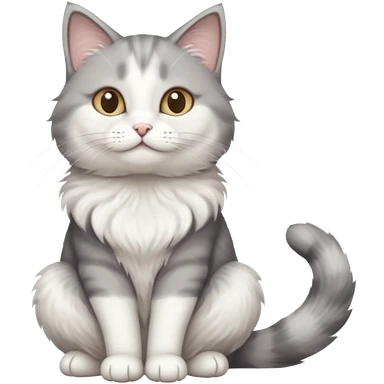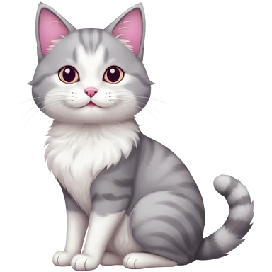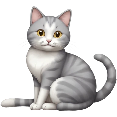 grey and white cat doing a big long stretch emoji