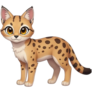 Big-eared big-eyed cute realistic animalistic feral digitigrade 4-legged anime-styled Sergal-Serval-hybrid-fusion-creature-animal, full body emoji