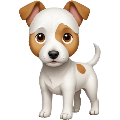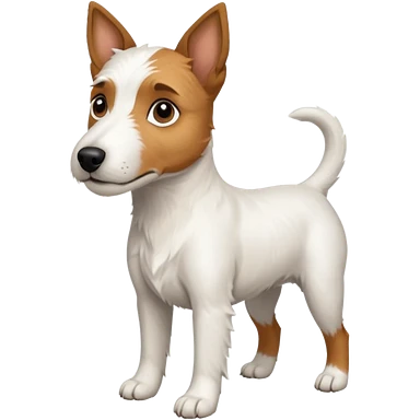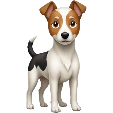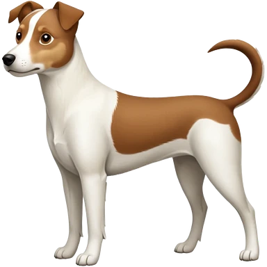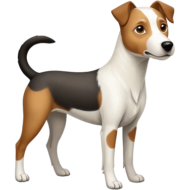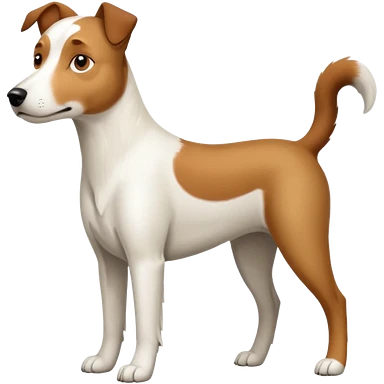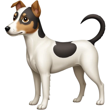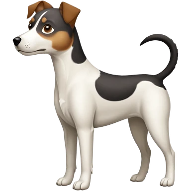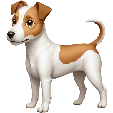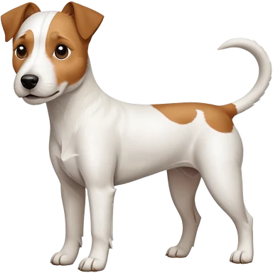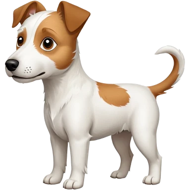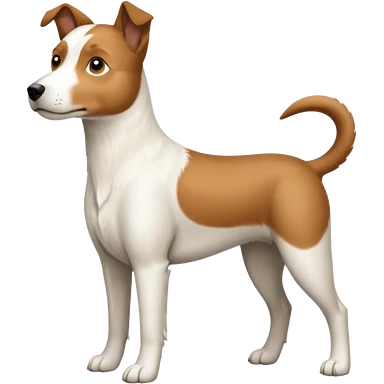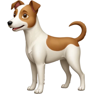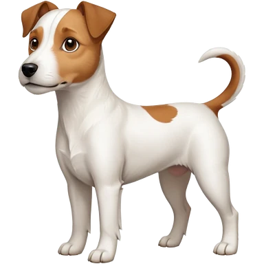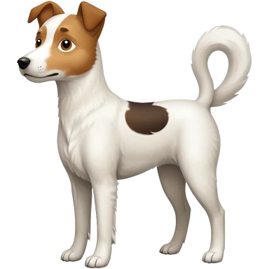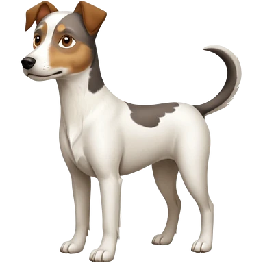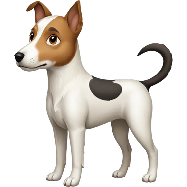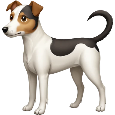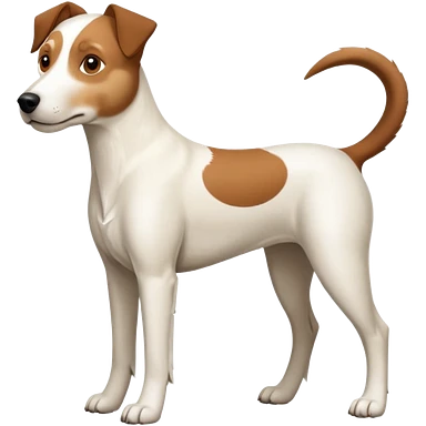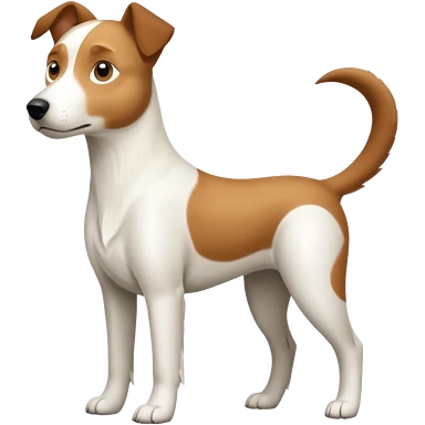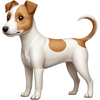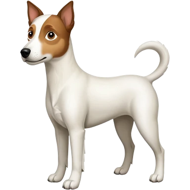 a full body large white parson russell looking dog the size of a kelpie with light brown flopped down ears and a light brown patch on one eye and a large snout emoji | AI Emoji Generator