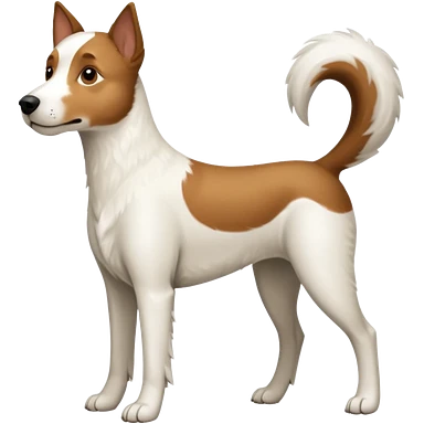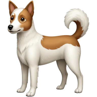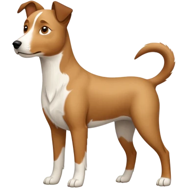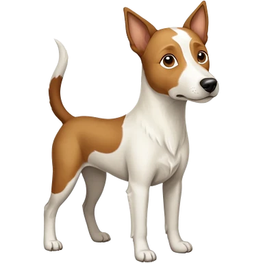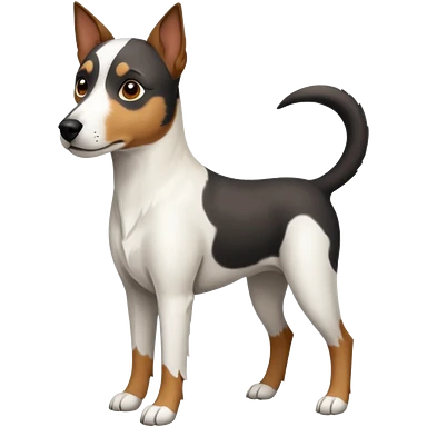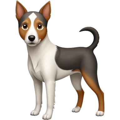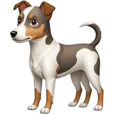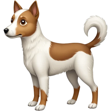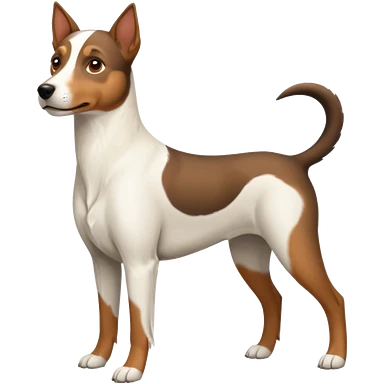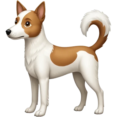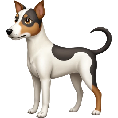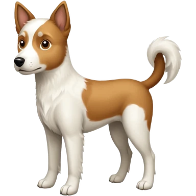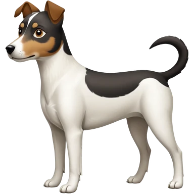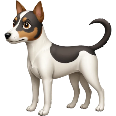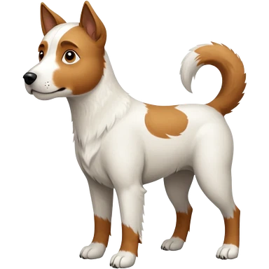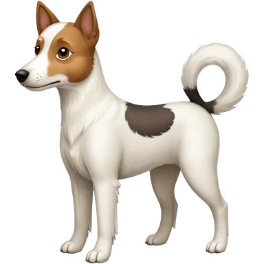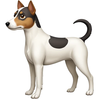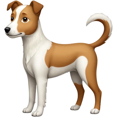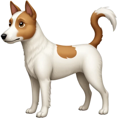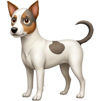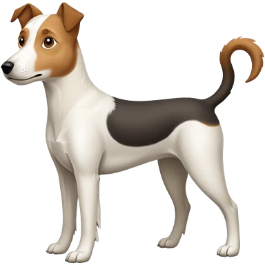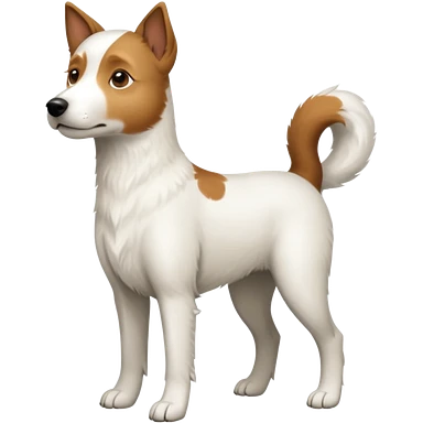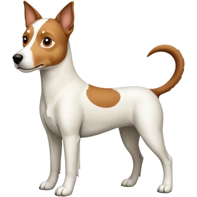 a full body large white parson russell looking dog the size of a kelpie with light brown flopped down ears and a light brown patch on one eye and a large snout emoji | AI Emoji Generator