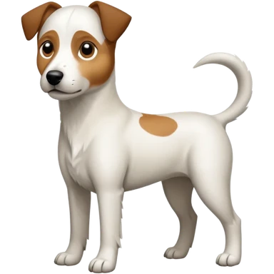 a full body large white parson russell looking dog the size of a kelpie with light brown ears and a light brown patch on one eye and a large snout emoji | AI Emoji Generator