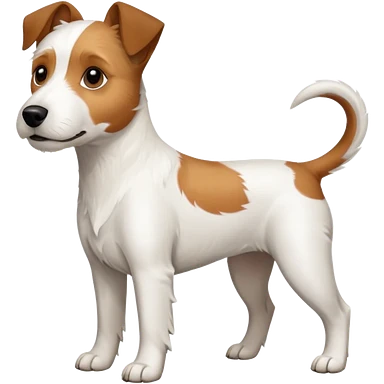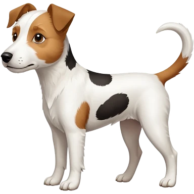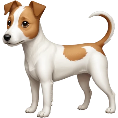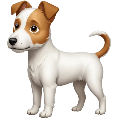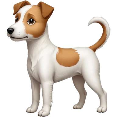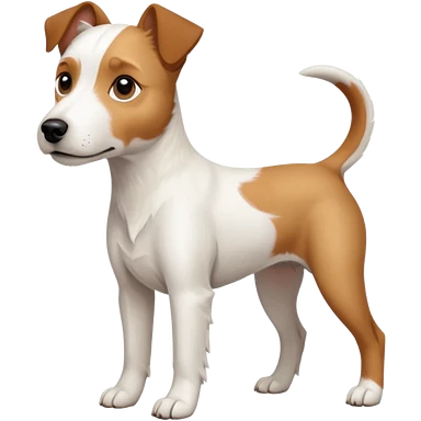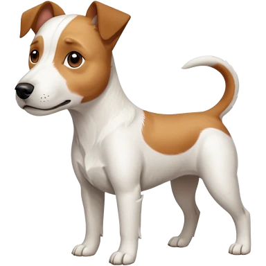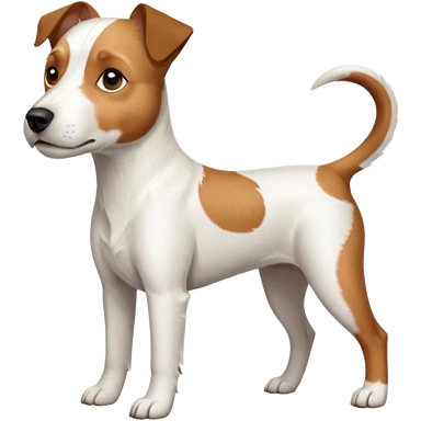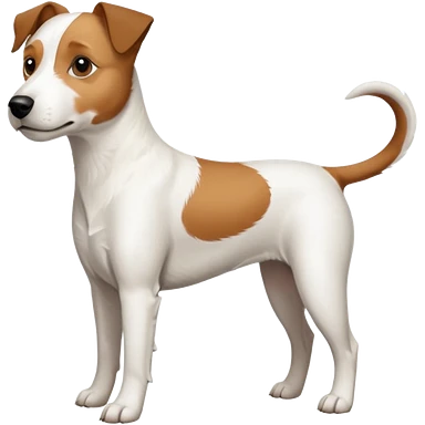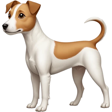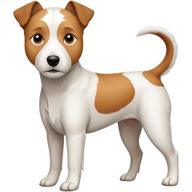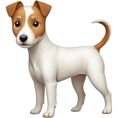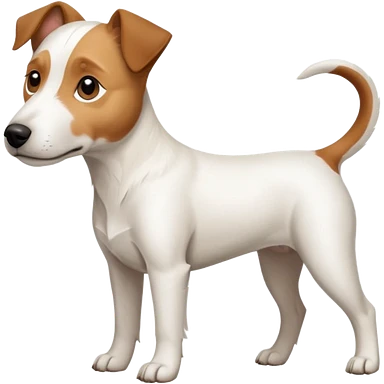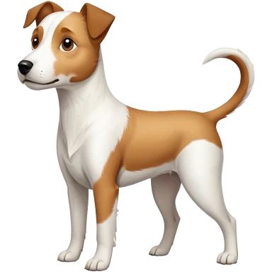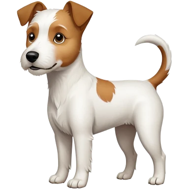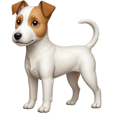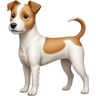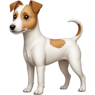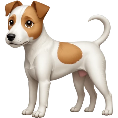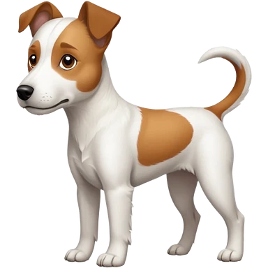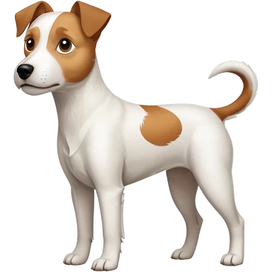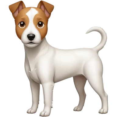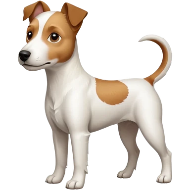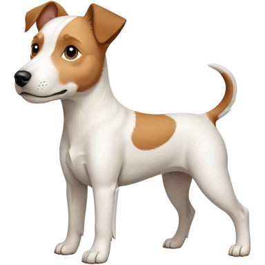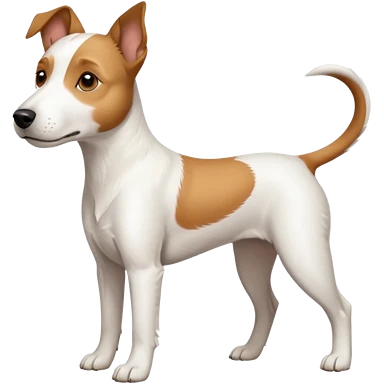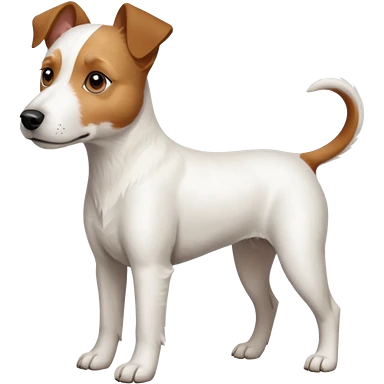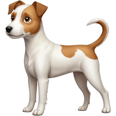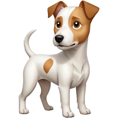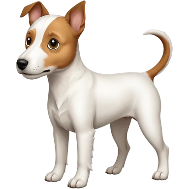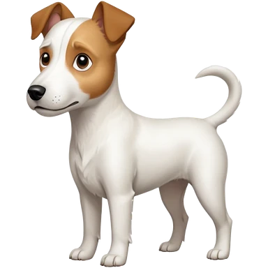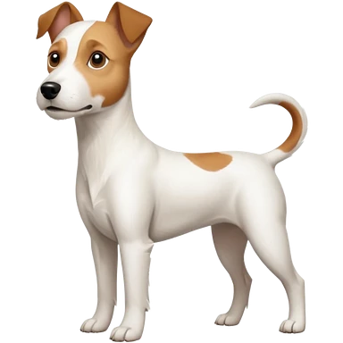 a full body large white parson russell terrier looking dog the size of a kelpie with light brown big ears and a light brown patch on one eye and a large snout emoji | AI Emoji Generator