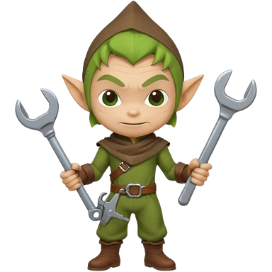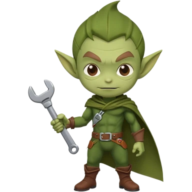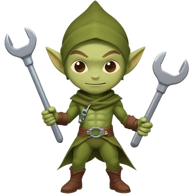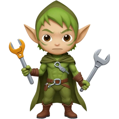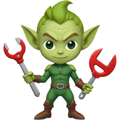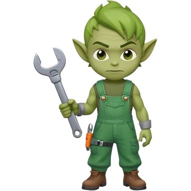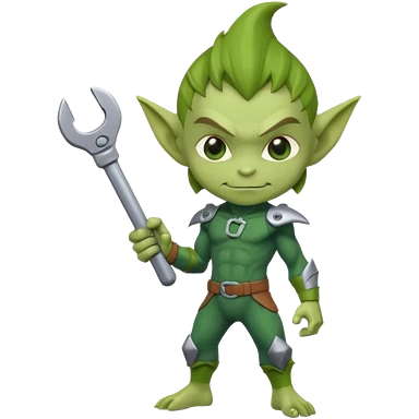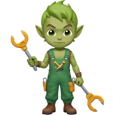 short green goblin, hold a wrench, cute chibi full body emoji