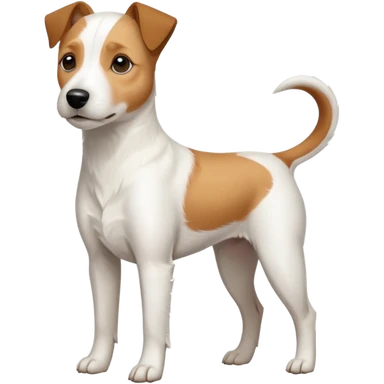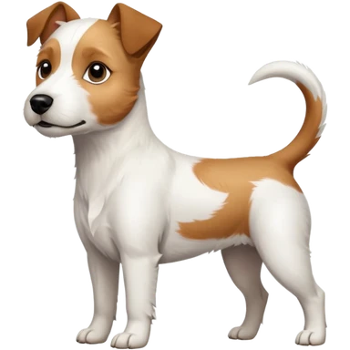 a full body slightly chubby white parson russell terrier looking dog the size of a kelpie with light brown long ears and a light brown patch on one eye and a large snout. the rest of the dog is completely white emoji | AI Emoji Generator