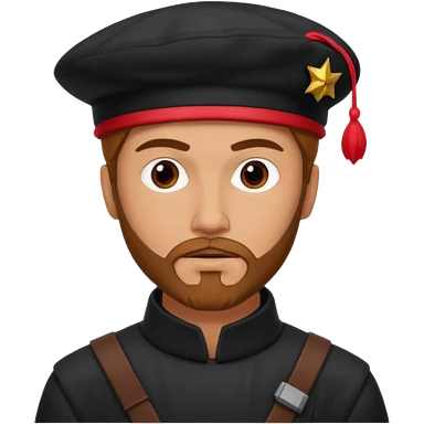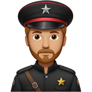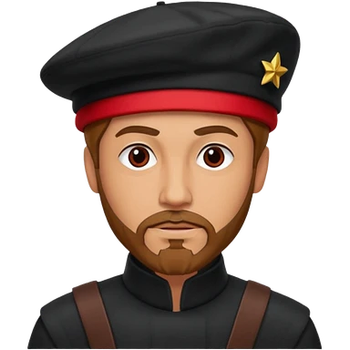 A full body tall guy with a red goatee. He wears a black military barret dressed like a star wars smuggler emoji | AI Emoji Generator