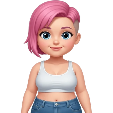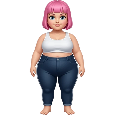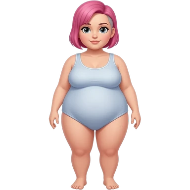 A full bodyview head to foot. obese girl with short pink hear that is buzzcut on the side. Wearing a sexy tanktop emoji