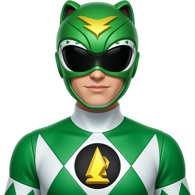 wasian girl in a green Power Ranger suit, black straight hair, black eyes emoji