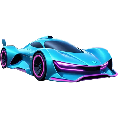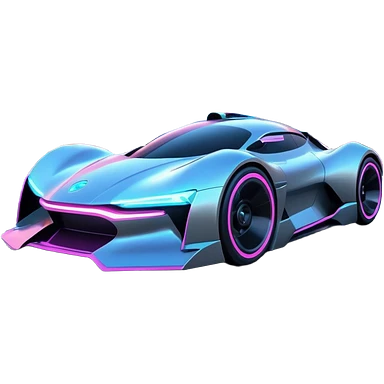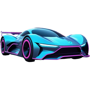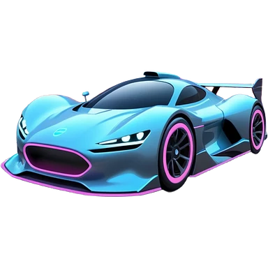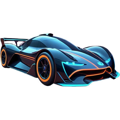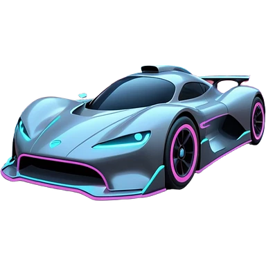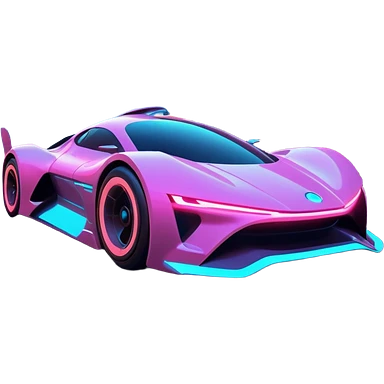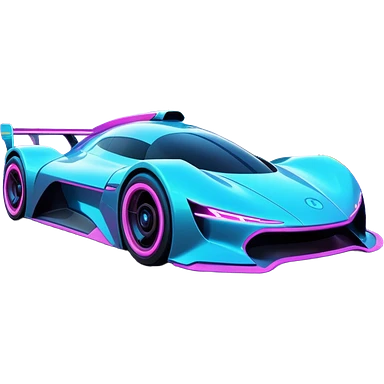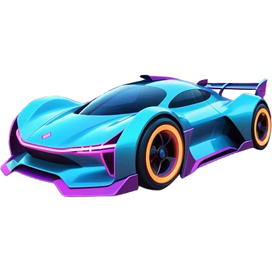 A futuristic racing car with glowing neon lights, sleek aerodynamic design, and a cyberpunk cityscape in the background. The car is speeding through a neon-lit street with high-tech buildings and holograms." emoji