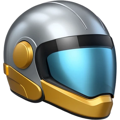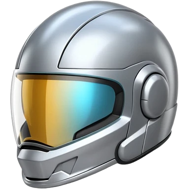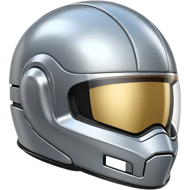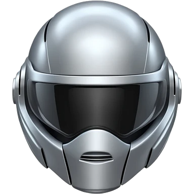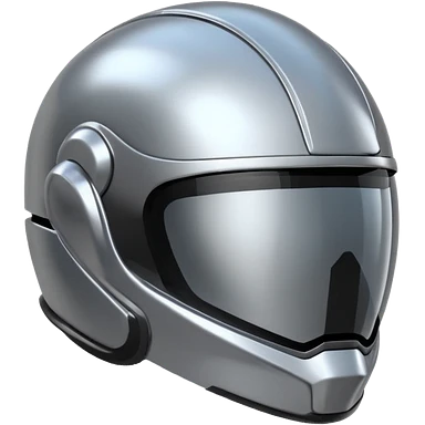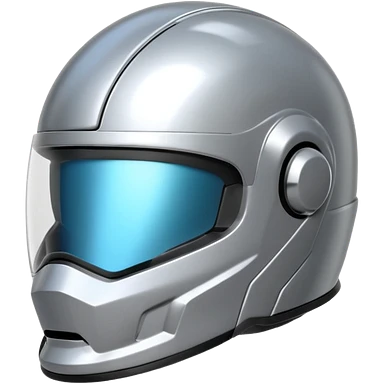 A futuristic helmet emoji made of silver chrome, smooth aerodynamic shape, minimal visor detail, reflective metallic surface, sci-fi aesthetic, iOS emoji style, centered on clean white background emoji | AI Emoji Generator