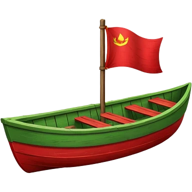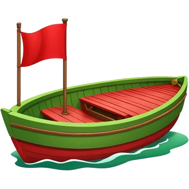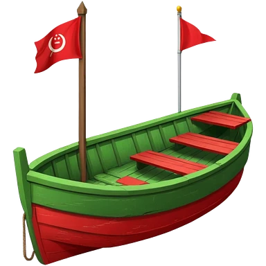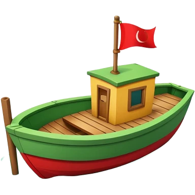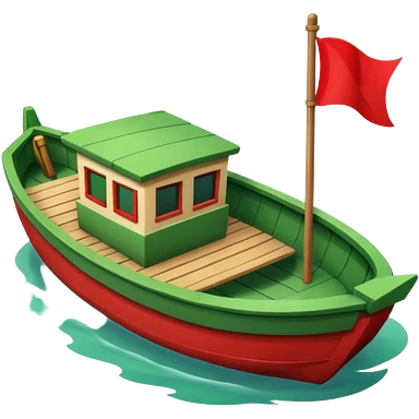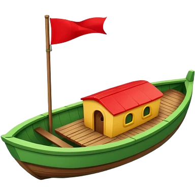 green boat in cartoon having a small place to live and a small red flag on it emoji