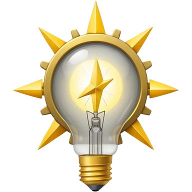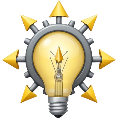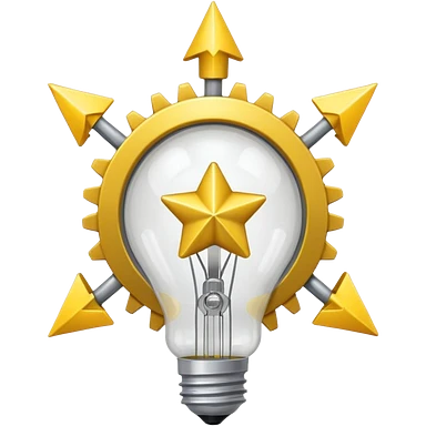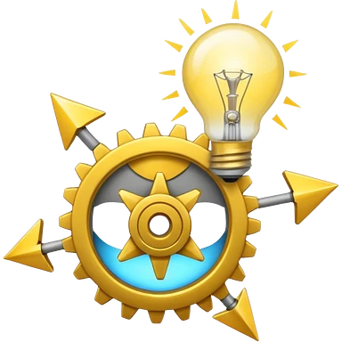 a gear with golden raising arrow behind it on the right side, and then a small golden beaming light bulb on the left side emoji | AI Emoji Generator