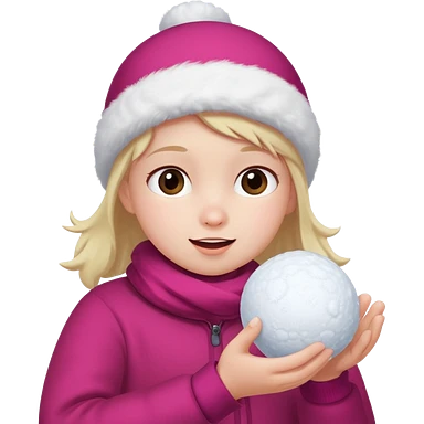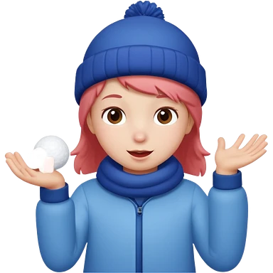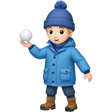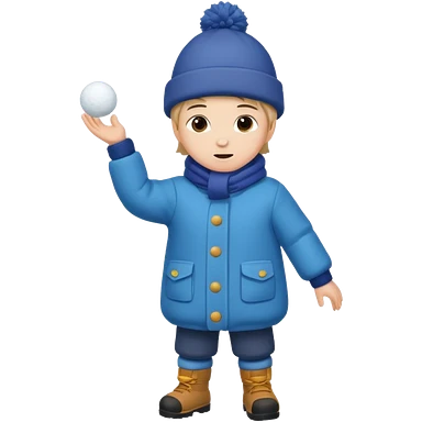 a child throwing a snowball, snowy background, cheerful expression emoji