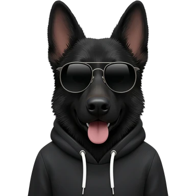 Black German shepherd dog wearing a hoodie and sunglasses emoji