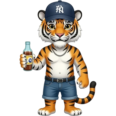 A ghetto tiger standing with a cap and a bottle in his hand with no clothes emoji