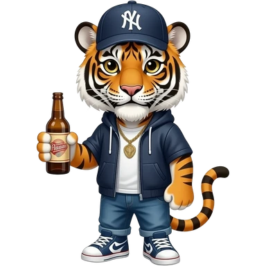 A ghetto tiger standing with a cap and a bottle in his hand emoji