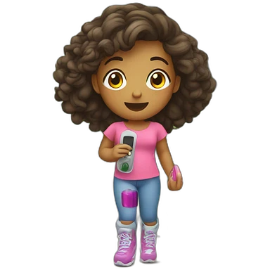 A kid using her insulin pump while playing in a park. She has curly hair and wears blue clothes emoji