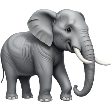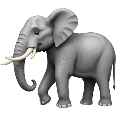 A giant 3D cartoon elephant in side view, towering and muscular, long tusks forward, thick textured skin, dust swirling around, strong sunlight and dramatic shadows, Memoji-style but intense and powerful. emoji | AI Emoji Generator