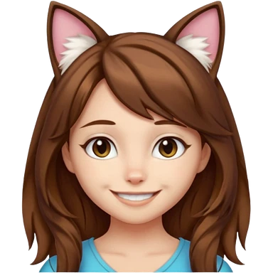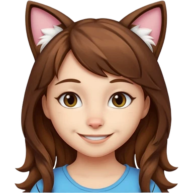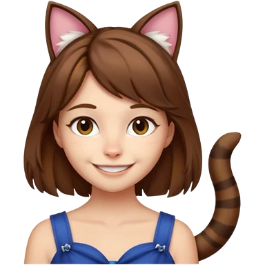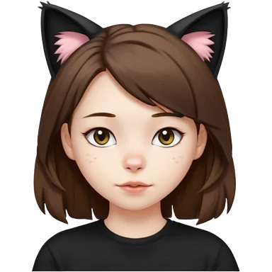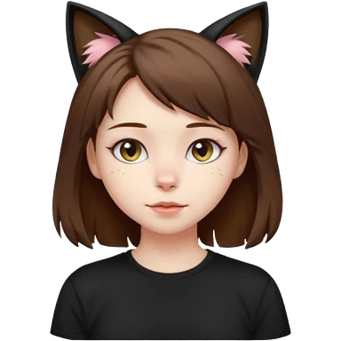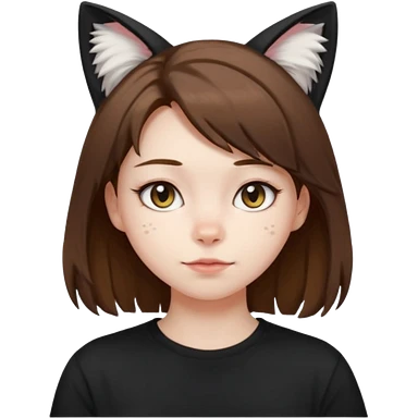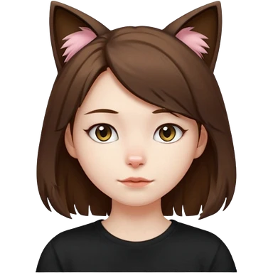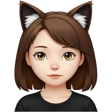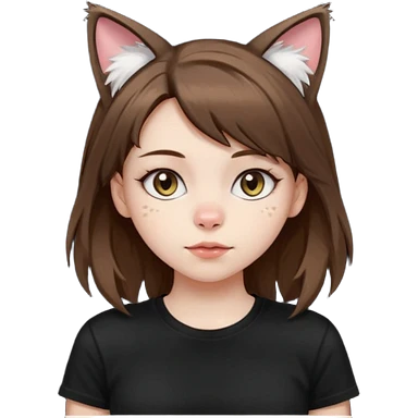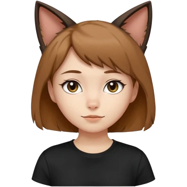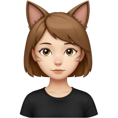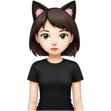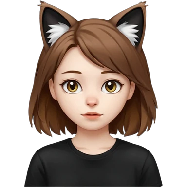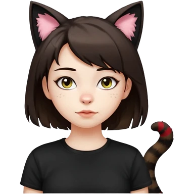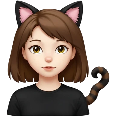 a girl with short brown wolf cut , cat ears and a tail, with a black t-shirt on emoji