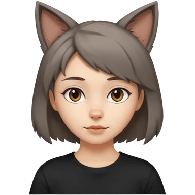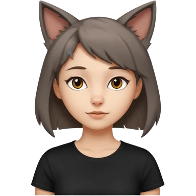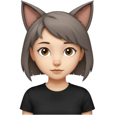 a girl with short brown wolf cut , grey cat ears and a tail, with a black t-shirt on emoji