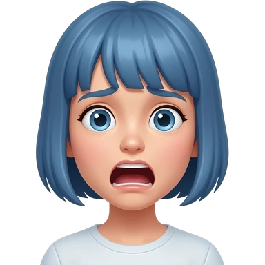 A girl with short blue hair screams in fear emoji