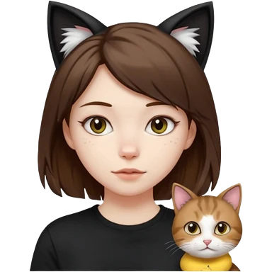a girl with pale skin, shoulder lengh brown hair with lots of dandruff , cat ears and a tail, with a black t-shirt on emoji