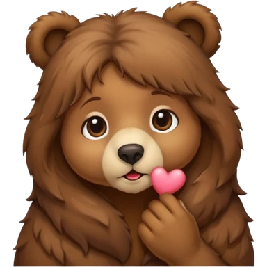 A girl with dark brown hair is holding a huge evil eye amulet in her hand. emoji