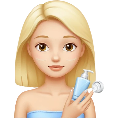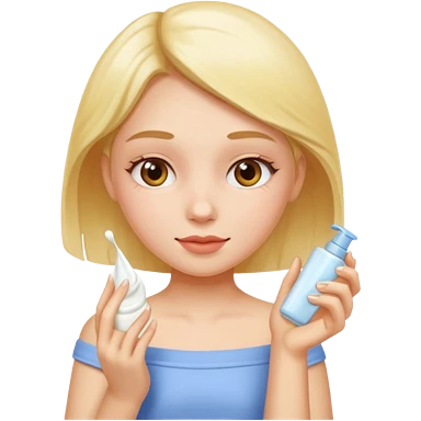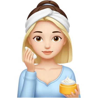blond Girl applying skincare on her face with a skincare headband on emoji