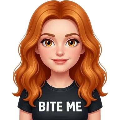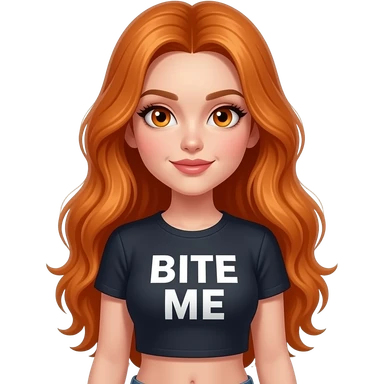 sexy girl with long ginger hair and ginger eyes a top with BITE ME written on it emoji