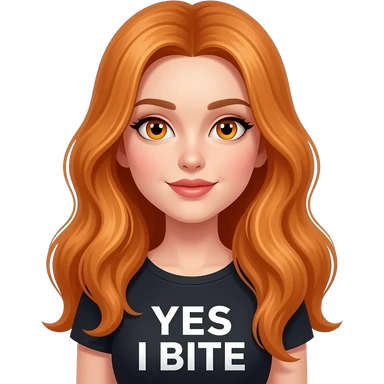 sexy girl with overlong ginger hair and ginger eyes a top with YES I BITE written on it emoji