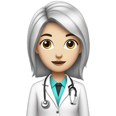 doctor girl medium light brown hair green eyes in a doctor suit and a cute kitty emoji