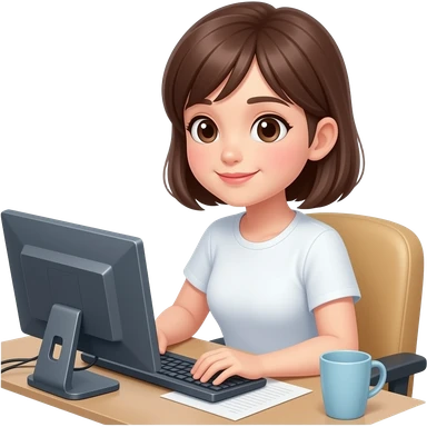 a girl with curly brown hairs wear white shirt and blue neck tiee emoji