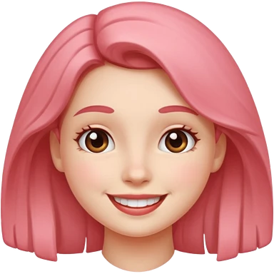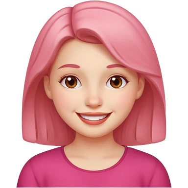 A girl emoji with pink hair, wearing white and pink clothes, with green eyes emoji