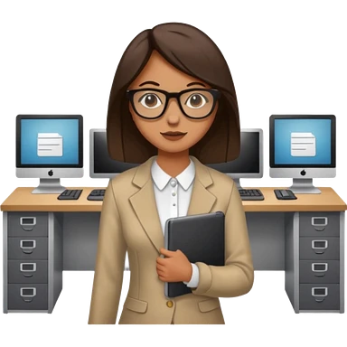 a girl walking into a computer room in an organized manner emoji