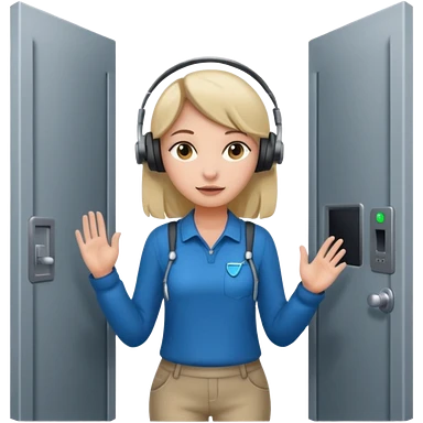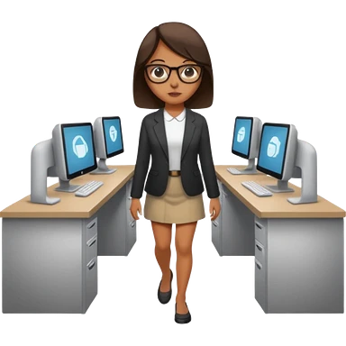a girl entering/walking a computer room in an organized manner emoji | AI Emoji Generator